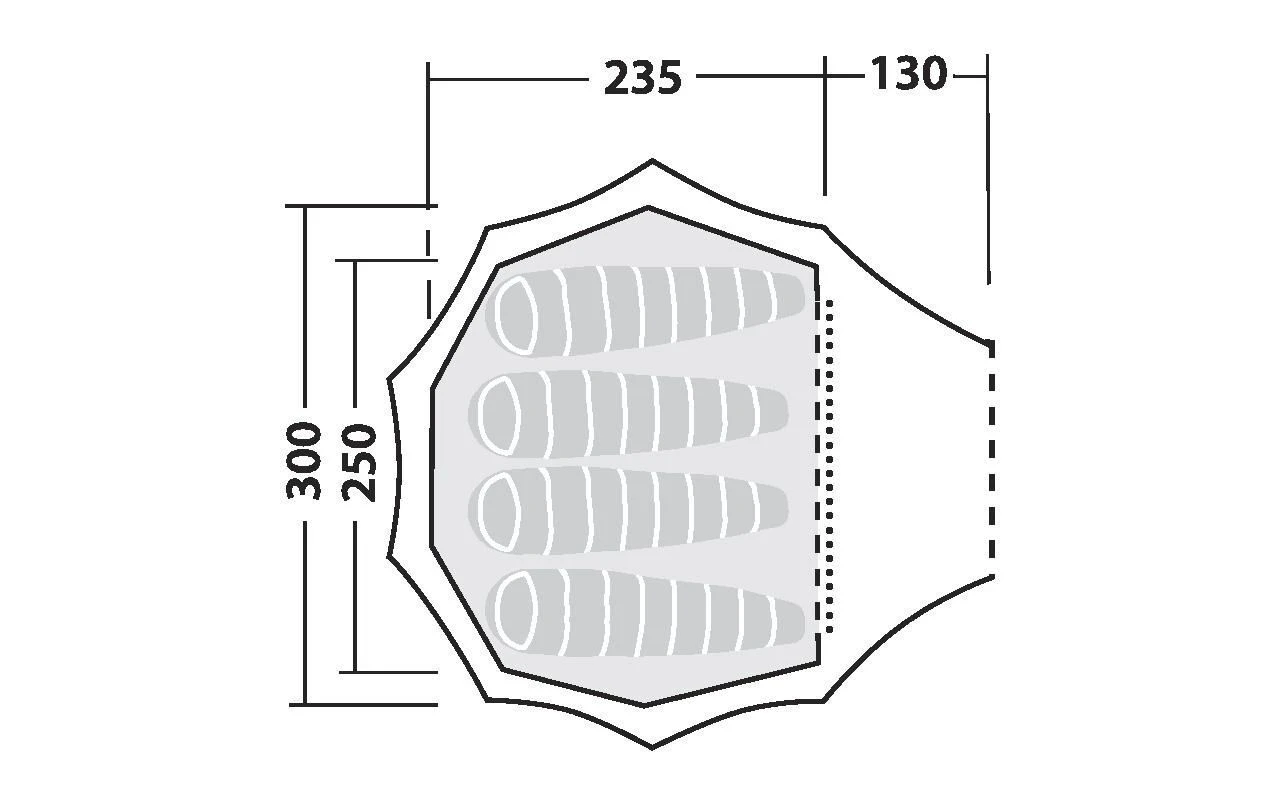 The Robens Fairbanks is a polycotton tipi tent, which has plenty of space for four people to sleep within. Simple and easy to pitch, thanks to the single pole construction.