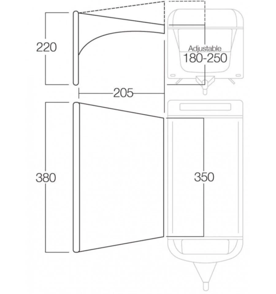The Vango Airbeam Sun Canopy, with a width of 350cm, fits onto camper vans, motorhomes and caravans. The sun canopy is a fixed canopy, meaning it requires the vehicle to stand. Perfect for adding an auxiliary living space to your vehicle, and shelter from the sunshine or the rain, with optional sun walls to cover the sides of the Sun Canopy. Fits into the 6mm groove on the caravan, or any fixing strip on a caravan or motorhome.