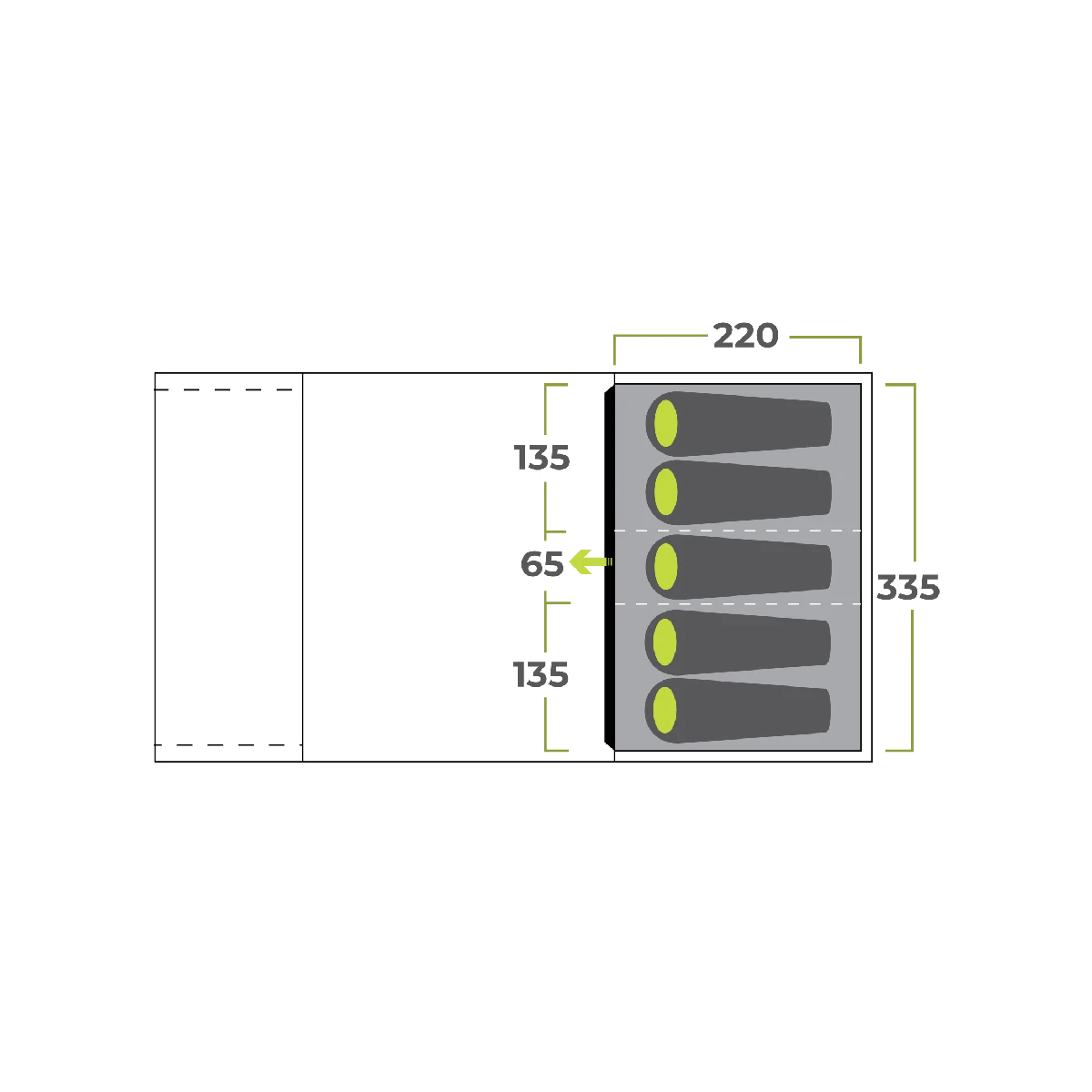- Multi Room bedroom system allows you to adjust the bedroom / storage areas using the zip out dividers – this model sleeps 4 comfortably but allows up to 5 making it perfect for small families
